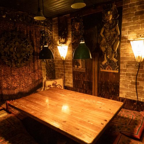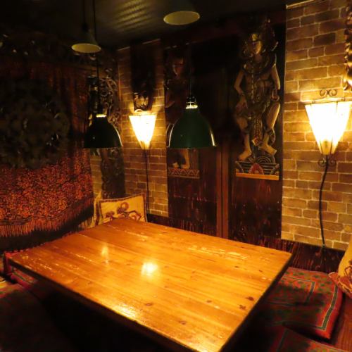 足を伸ばしてリラックスできる掘りごたつ席もご用意しております♪最大16名様までのご利用が可能で、少人数から大人数までさまざまなシーンにマッチ。異国情緒漂う特別感あふれるお席で、まるで自宅にいるかのようにくつろぎながら、エスニックな料理を楽しめます♪落ち着いた空間で、美味しい料理や会話をご満喫ください◎